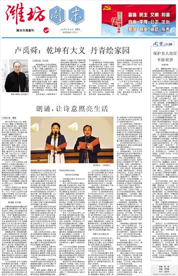 差不多两千年前,江边。那晚,月白如水。曹操心中筹划着自己的伟业,诗情澎湃,他以一种豪迈的声音吟出了自己心中的感慨:“对酒当歌,人生几何!譬如朝露,去日苦多。慨当以慷,忧思难忘。何以解忧?唯有杜康。”(曹操的《短歌行》) 差不多一千年前,也是江边。秋天的夜晚,月色皎洁。被贬黄州的苏东坡和朋友来到赤壁泛舟,想起曹操的故事,感慨万千。那晚,他们对着那轮明月,喝酒,诵诗,“壬戌之秋,七月既望,苏子与客泛舟游于赤壁之下。清风徐来,水波不兴。举酒属客,诵《明月》之诗,歌《窈窕》之章。少焉,月出于东山之上,徘徊于斗牛之间。白露横江,水光接天。纵一苇之所如,凌万顷之茫然……”(苏东坡的《前赤壁赋》)。 又过了一千年,还是秋夜,还是那轮明月。仍有酒。在虞河路的一个小酒馆里,坐了几位普通的潍坊人,老中青都有。有酒有月的环境让人感慨,不由得想起苏东坡。在座的赵鹏和高洁掏出随身带着的老花镜,朗诵起苏东坡的《水调歌头·明月几时有》,那声音抑扬顿挫,或厚重、或温柔,或高亢,或低沉,当听到“人有悲欢离合,月有阴晴圆缺,此事古难全。但愿人长久,千里共婵娟”,听的人已是痴了…… 诗言志。朗诵也言志。确切地说,朗诵是一种诗意的表达。几千年来,一代又一代的人以这种方式表达着自己的情感,也许只有中国人才理解的情感,而这个过程,就是中华民族文化的传承。 朗诵着,快乐着 赵鹏和高洁都是潍坊播音主持界的大腕,潍坊最早的一批广播、电视主持人。那晚,之所以朗诵苏东坡的词,是因为他们刚去看望了一位朋友,一位患了重病的同龄的朋友。“但愿人长久,千里共婵娟”,是对人生的思考,也是对朋友的祝福。人生在世,喜怒哀乐是免不了的。各种情绪积于心中,有人将之转化为眼泪,有人将之转化为文字,有人将它转化成歌声,也有人将它转化成体育运动。而他们,把这种情感转化成朗诵。 那晚聚会的是一群热爱朗诵的人。有这方面资深的专家,有年轻的广电主持人,有业余的朗诵爱好者。大家谈论最多的,是某个经典作品写作的背景,作者想要表达的情绪,以及在朗诵时某句话抑扬顿挫的处理方式。他们说:“朗诵这件事儿会让人上瘾,曹操说,何以解忧,惟有杜康。我们说,何以快乐,惟有朗诵”。一部经典作品,被自己的声音完美地表达,是一件很有成就感的事情。而如果把它分享给听众,能够引起共鸣,那种心理的满足感更是无以言表。 为了这份热爱,也为了给潍坊的朗诵爱好者们搭建一个展现才华、交流心得、提升自我的平台,2014年5月,他们成立了潍坊朗诵与语言艺术协会。这是由潍坊市民政局批准成立的民间社团组织,现有会员130多名,主要是由社会各界朗诵与语言艺术的爱好者、潍坊市的朗诵专业人士及语言艺术工作者组成,旨在“诵读经典、传承文明、繁荣文化”。为了进一步提升大家的专业水平,协会还聘请了中央人民广播电台著名播音员方明、虹云,著名诗人桑恒昌、老巢,中国传媒大学杨杰教授、浙江传媒大学赵思运教授等担任顾问和艺术指导。 协会成立两年多来,他们定期举办读书和朗诵活动,成功举办了潍坊市第一届经典诵读大赛、2016母亲节朗诵会、富华之夜朗诵会、2016新年朗诵会、“情动心弦”致青春朗诵诗会等大大小小十几场活动。在潍坊,有数万名喜欢朗诵和喜欢听朗诵的人参与其中。 潍坊市朗诵与语言艺术协会的会长马永安是我市的知名作家、策划人,大家都叫他老马,他说:“协会里最初的参与者都是业界大腕,功力实力影响力决定了他们的价值,我曾经担心,在当今的功利社会里,那些小打小闹的活动和几乎是纯公益的行为能否引起他们参与的兴致。后来发现,这‘小人之心’的揣度亵渎了他们的热爱,他们享受的氛围是朗诵之美传达的快乐体验,甘于付出也乐于付出”。 当然,还有更多的年轻人,他们参与的热情和好学精神也让老马颇感意外,他总结了朗诵协会人员的几大特点: 一,爱朗诵。不管是诵还是听,都会沉醉于文学作品和语音再创作的艺术氛围里,感受且愉悦。 二,爱吃。每每聚会,总要与吃有着密不可分的联系,大酒店小饭馆自给自足,哪怕是一碗面条也吃得津津有味,聊得眉飞色舞,他们私下里自称“潍坊朗诵与语言艺术美食家协会”。 三,爱笑。如果有一天你在某处听到那种无遮无拦的爽朗笑声,想象着那些笑着的人张开的大嘴几乎看到胃的感觉,那多半是朗协的人在聚会。 四,爱哭。真诚的人最善良,善良的人容易被感动,有些带有悲悯情怀的作品,诵者常常每诵必流泪,听者往往每听必流泪。 有悲伤也有惊喜 在朗诵的过程中,发生过许多让人难忘的事儿。 那天,是中华经典诗文诵读大赛的决赛,在滨海区举行。来自不同行业不同年龄的选手表现出了很高的诵读艺术水准,比赛过程可以说得上精彩纷呈,跌宕起伏,正当大家沉浸在一篇篇优美动人的经典诗文中的时候,工作人员在后台发现一位选手出现了呕吐现象,那是一位清秀的小伙子,他看起来非常虚弱,脸色煞白,放在腿上的双手在微微抖动,似乎要随时倒下去的样子。大家劝他既然身体不好,就干脆回家歇着吧,又不是什么重大比赛。可是小伙子说,他要坚持。 那天,小伙子是坐在椅子上完成了朗诵。他朗诵的作品是《中国,站在高高的脚手架上》,这是一首慷慨激昂的诗歌,需要足够的底气来完成。当他的第一句声音发出: