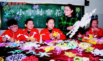 11月21日,青州市黄楼街道的小学生在学习剪雪花的剪纸技艺。今年以来,该街道通过开展剪纸等传统民间艺术课外实践课,在寓教于乐中让学生们感受祖国民间艺术之美,激发孩子们对民间艺术的热爱之情。 记者王晓光摄