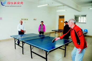 11月21日,在奎文区梨园街道栾家社区,几位居民正在打乒乓球。 为丰富社区老年人的“夕阳生活”,该社区打造“文化之家”,不断扩建增设阅览室、健身室、娱乐文化活动室等,让他们可以在其进行读书交流、健身,文艺演出等,提高了居民幸福指数。 记者俞珂摄