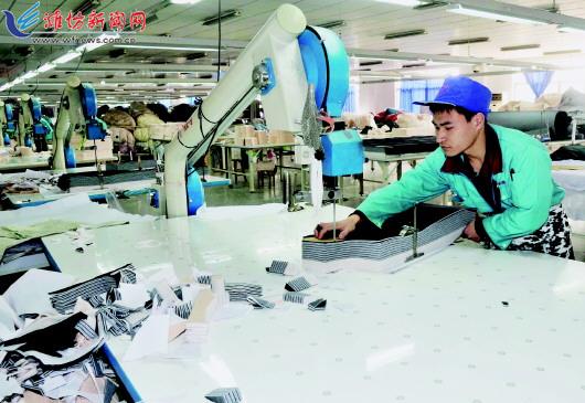 今年以来,面对经济下行压力持续加大的严峻形势,高密市主动适应经济发展新常态,认真谋划和推动供给侧结构性改革,着力稳增长、调结构、促改革、惠民生,经济社会各项事业取得新发展。今年前三季度,该市完成地区生产总值470.8亿元,同比增长8%;实现地方财政收入38.4亿元,增长12.6%。图为12月6日,高密思美尔服饰有限公司职工在裁剪面料。 记者王晓光摄