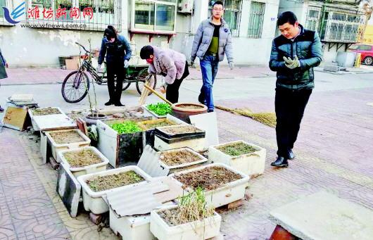 12月5日,潍城区城关街道城隍庙社区工作人员在清理泡沫箱子等杂物。针对住宅小区内居民遗弃的种菜泡沫箱子破坏环境卫生还占据空地的情况,该社区工作人员和志愿者进行了集中清理,受到居民的欢迎。