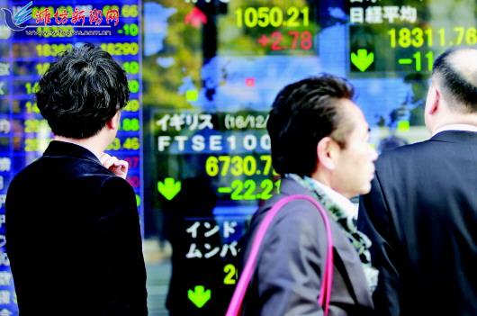 12月5日,行人从日本东京一块电子股指显示屏前走过。 意大利总理伦齐5日宣布辞职,引发市场对欧洲金融系统的担忧。受此影响,东京股市日经225种股票平均价格指数比前一交易日下跌0.82%。按行业来看,5日东京股市除水产农林业、海运业、批发业等7个板块小幅或微幅上涨外,近八成行业板块下跌,其中银行业、服务业、不动产业、建设业和保险业跌幅居前。 (新华社发)