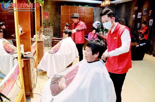 1月8日,寒亭义工为环卫工人理发。近日,寒亭区社工协会联合区环卫处和爱心企业联合开展为环卫工人免费理发公益活动。活动中,理发师耐心询问环卫工人的要求,认真细致地帮助环卫工人理发。据了解,义剪活动将持续进行,并将每月的第一个周三作为环卫工人爱心义剪日。 记者孙树宝摄