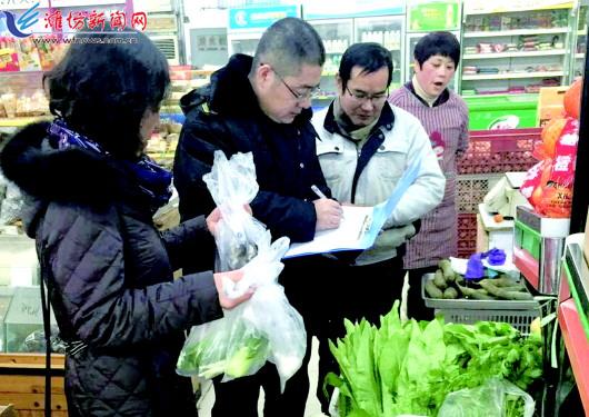 春节临近,奎文区市场监督管理局梨园所加强食用农产品快速检测工作,加大对节日市场的食品安全监管,保障消费者舌尖上的安全。图为近日,该所工作人员正在辖区一家超市内进行抽样检测。