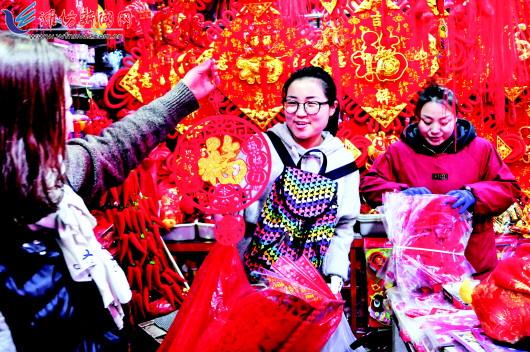 1月17日,在城区小商品城一家节庆用品店内,市民正在挑选节日饰品。 农历新年临近,许多市民纷纷来到我市各大购物场所,挑选购买传统中国结、鸡年吉祥物等带有节日气氛的装饰品,准备迎接新春的到来。 记者俞珂摄