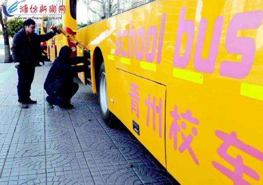 2月9日,工作人员在进行校车安全检查。新学期开学在即,青州市对所有校车逐一进行检查审核,从源头上清除可能造成校车交通事故的安全隐患,为学生乘坐校车构筑起首道安全防线。 记者王晓光摄