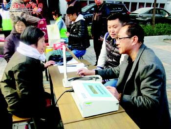 3月18日,志愿者在给居民检测血压计。为深入践行市党代会精神,潍城区城关街道曹家巷社区举办“弘扬雷锋精神,展示计量风采”志愿服务活动,计量志愿者为社区居民免费检测血压计、人体秤、电能表、水表、热能表、燃气报警器等计量器具,解答居民的疑难问题,受到居民的欢迎。 记者王晓光摄