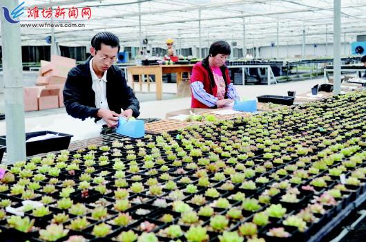 为进一步扩大农产品销售渠道,青州市弥河镇在坚持“企业+专业合作社+农户”的现代农业发展模式的同时,不断推进新型农业经营主体、加工流通企业与电商企业全面对接融合,推动线上线下互动发展,不断延长产业链条,实现农产品规模化、专业化、品牌化生产,有效增加了农民收入。图为4月23日,该镇一家盆景苗木专业合作社社员在包装网络销售的多肉植物。 记者王晓光摄