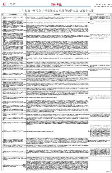 山东省第一环境保护督察组交办问题查处情况公告(第十七批)
