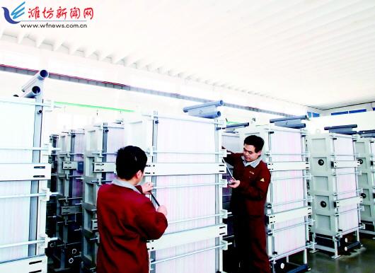 滨海区以项目建设为抓手,以旅游度假区为载体打造海洋旅游度假中心,建设临港重化工基地、高端装备制造基地和中外合作产业园,吸引了潍柴重机、瑞驰新能源汽车、天维膜、中海油石化盐化一体化等一批优势项目加快聚集,全力打造区域经济发展新增长极。图为5月15日,滨海区引进的山东天维膜技术有限公司内,工作人员正在进行酸分离交换膜生产。 记者孙树宝摄