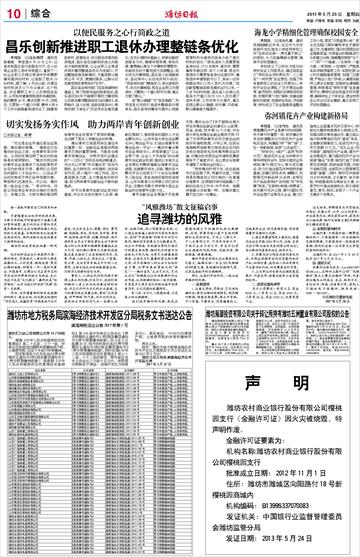 地址:潍坊市奎文区文化路500号 邮编:261031 电话:0536-8196033