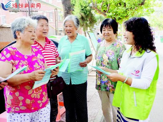 6月27日,奎文区潍州路街道健康街社区志愿者在宣传节水知识。为了进一步增强居民的节约用水意识,该社区开展了“节约用水,从我做起”活动,志愿者为居民讲解日常生活中的一水多用、废水循环利用等节水知识,营造全民节水的良好氛围,共同打造节水社区。 记者王晓光摄