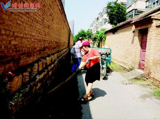为营造整洁、舒适的生活环境,近日,奎文区虞中社区联合辖区志愿者对十中街小区进行集中清扫整治。 清扫中,志愿者骑着三轮车,带着铁锹、扫帚等工具,将一处处堆放在店面及小区角落的旧家具、废木材、装潢材料等搬走,同时清扫落叶和杂草,清理砖头石块等建筑垃圾。此次清扫整治使得该居民区内的环境卫生焕然一新,得到了居民广泛的赞扬。图为清扫整治现场。 记者王晓丽摄