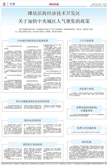 潍坊滨海经济技术开发区关于加快中央城区人气聚集的政策