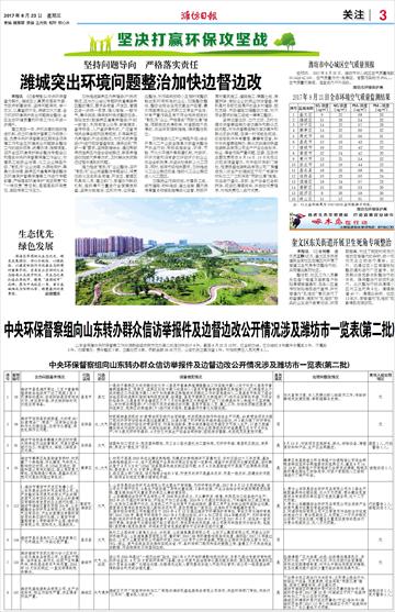 中央环保督察组向山东转办群众信访举报件及边督边改公开情况涉及潍坊市一览表(第二批)