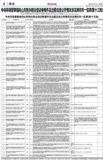 中央环保督察组向山东转办群众信访举报件及边督边改公开情况涉及潍坊市一览表(第十三批)