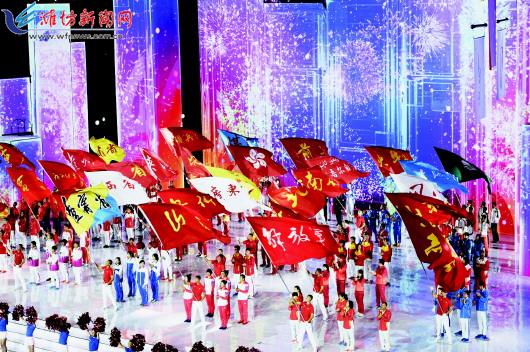 | 各体育代表团运动员代表在闭幕式上挥舞旗帜。(新华社发) |