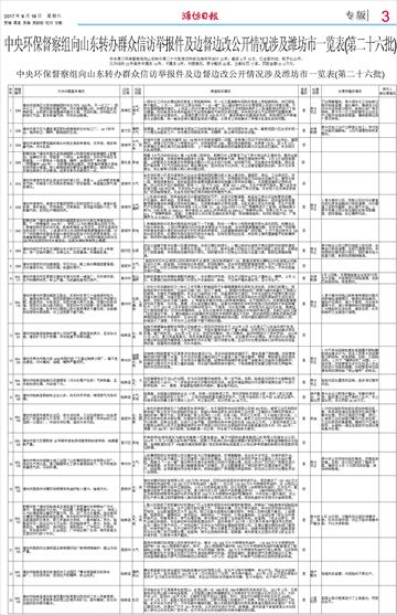 中央环保督察组向山东转办群众信访举报件及边督边改公开情况涉及潍坊市一览表(第二十六批) |