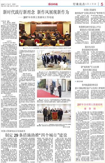 □本报记者 薛静 通讯员 曹培敬 梁丽丽 2017年以来,市国土资源局紧紧围绕全市“一三四七”目标任务、战略重点和推进全面从严治党新要求,深入开展“作风建设年”活动,全力做好保发展、保资源、保权益“三篇文章”,各项工作取得了新业绩、实现了新突破。在继续保持全国文明单位、全国系统先进集体的基础上,2017年荣获全国国土资源执法监察工作先进集体、全省系统年度工作先进单位、市科学发展综合考核优秀单位等市级以上荣誉40多项,被市委、市政府荣记集体三等功。 主动作为 全力推进“四个城市”建设 优化布局突出重点,“调出”规划空间最大化。争取新增用地空间14.7万亩,有效解决了规模倒挂等问题,将高铁片区、站南广场、新机场等重点项目片区纳入规划,完成全市25个重点项目1.3万亩用地预审,保障了“十三五”经济社会发展用地。用活用好联合储备、单独选址、年底调剂等指标争取途径,全年共争取使用各类新增建设用地计划3.32万亩。 精准配置用地计划,“控出”指标使用效率最大化。实行现代产业竞争性用地机制,优先保障大项目、好项目用地,统筹1500亩指标,精准投向20个优质项目。供应各类建设用地5.82万亩,通过验收增减挂钩和工矿废弃地复垦项目,腾出流量指标6000亩,上报低丘缓坡试点用地779亩,进一步拓宽了用地空间。 构建用地新机制,实现集约高效最大化。大力推广“零增地”发展模式,诸城市被列为全国首批13个节约集约用地“四个创新”示范点之一。出台《市区房地产用地供应管理办法》,建立配套制度,实施“限地价、竞配建”出让方式,促进了房地产市场健康发展。 完善机制,助推地理信息产业快速发展。山东测绘地理信息产业基地建设取得新进展,目前已有123家知名企业和研发单位落户基地,累计投资147.6亿元,实现产值81亿元,利润5.6亿元。加快智慧潍坊时空信息云平台试点建设,成为全国第一个通过验收的地级市。在全省率先建立“三固三化”基础地理信息数据实时更新机制,采集了市区及周边726平方公里高分辨率航拍影像数据,基础测绘成果使用在全省系统领先,先后为济青高速、城区快速路、中心城区交通优化提升等重点工程提供数据保障。 提升管理水平 政务服务能力实现新突破 保护土地资源,严守耕地保护红线。全面完成永久基本农田划定五项任务,全市共划定永久基本农田995万亩。加快推进高标准农田建设,统筹推进土地整治,全市共验收土地整治面积6.38万亩,新增耕地8260亩,精准扶贫土地整治示范工程进度居全省前列。 发展绿色矿业,助推生态文明建设。牢固树立绿水青山就是金山银山的生态理念,编制完成第三轮矿产资源规划,推进露天矿山专项整治,科技管矿信息系统率先通过省厅验收。持续开展矿产勘查开采秩序集中整顿、安全生产隐患排查治理等行动。潍坊市地质勘查与地质灾害应急技术指导中心建成使用,山东省实物地质资料中心潍坊库揭牌运行,昌乐火山国家地质公园揭碑开园。 强化执法监管,维护资源利用管理良好秩序。深入开展国土资源矛盾隐患排查化解,出台《加强国土资源执法监管建立共同责任机制的实施意见》,进一步强化共同监管责任,实现了“零通报、零约谈、零问责”目标。执法监察案卷评查优秀卷宗数量和总分全省第一。 着力推进“放管服”改革,完善提速机制。建设用地审查报批实现网上并联,用地预审由20个工作日缩短为7个。严格落实一次性告知、首问负责、限时办结、审批事项回访等制度,建立审批事项目录清单、权力责任清单和负面清单。优化服务链条,对市级审批的采矿权登记等10项业务实行“零跑腿”网上办理,对建设项目用地预审等6项业务实行“只跑一次”现场办理。研究出台《关于对房屋与土地登记信息不一致等不动产登记问题的处理意见》,与多部门实现不动产登记数据共享,稳步推进“一窗受理、集成服务”模式。 锻造“国土铁军” 汇聚事业发展新能量 突出党建引领。提升党建规范化水平,推进“两学一做”学习教育常态化、制度化,制定基层党建突破项目方案和党建责任、问题和任务“三张清单”。 狠抓党风廉政。严格落实主体责任,深化廉政教育,开展明察暗访,完善防控机制,率先在全省系统开展党风廉政建设重点检查。 拓展教育培训。实行分类分级培训,制定年度培训计划,与井冈山革命传统学院联合开展2期红色教育,在青岛农业大学举办基层所长培训班。 深化作风建设。深入开展“作风建设年”活动,坚持以上率下,健全领导班子议事决策制度,构建起科学严谨的党委工作机制。推行“2+N”对标学访模式,在全市会议作典型发言;开展国土榜样评选表彰和弘扬“四种精神”征文活动,修订完善千分制考核办法,健全作风建设七项机制,扎紧制度“笼子”。 打造文明群体。以德育教育为抓手,以文化建设为载体,深入推进文明创建,在全市系统开展“不忘初心国土人、牢记使命敢担当”文艺调演,定期开展书画摄影比赛、羽毛球比赛等文体活动。 建设法治国土。印发《抓基层强基础深入推进法治国土建设实施方案》等5项依法行政制度文件,有效规范了行政执法行为。拓宽政务公开渠道,获全国“互联网+政务服务”先进单位。 完善激励机制。制定职称竞聘指导意见,出台加快推进科技创新工作意见,8个项目获评中国地理信