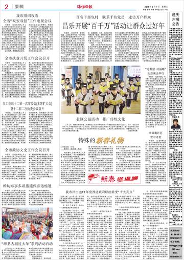 本报讯 (记者井峥 通讯员张磊 丛清洁)春节将至,为及时把党和政府的温暖送到千家万户,让全县困难群众、弱势群体感受到社会大家庭的温暖,度过一个欢乐祥和的新春佳节,昌乐县各级党委政府积极组织开展“送温暖、解难题、保稳定”进村入户大走访活动,通过百名干部包村、联系千名党员、走访万户群众,把暖意和希望、关怀和鼓励送到了特殊群众的心坎上。 “太感谢了,你们送来的东西都太及时了。”刘桂花是昌乐县朱刘街道都昌社区的居民,她的丈夫身患重病多年,公公婆婆身体不好,家庭困难。日前,社区和村里为她送来了蔬菜、面粉和现金等生活物资。除了刘桂花家,都昌社区已对辖区内19户、50名困难群众开展了走访慰问,确保困难群众“过暖冬”“过好年”。 据悉,对贫困户的关爱活动是昌乐县开展“送温暖、解难题、保稳定”进村入户大走访活动的一部分,活动中,全县各镇、街(区)所有机关干部全部下沉到村,通过百名干部包村、联系千名党员、走访万户群众的“百千万”活动,走访生活困难、鳏寡孤独和有利益诉求的家庭,了解他们的生活所需,征集群众意见,并针对各自情况,进行精准帮扶,解决实际问题。为确保“百千万”活动取得实效、保持长效,昌乐县对每名下访的机关干部落实了长期包靠责任制,对被包靠村、包靠户的安全生产、非法建设、精准扶贫、项目拆迁、村庄发展等所有事项进行全程包靠、一包到底,并实行群众工作首问责任制、限时办结制、责任追究制,以实际成效取信于民。 昌乐县县直部门通过驻村帮扶,积极走访入户,调查了解民情,努力帮助群众解决实际困难。县政协工作人员到朱刘街道北圈村,为困难群众送去了棉被和煤炭等过冬的物品。县经信局组织党员干部到营丘镇梨行村,为困难群众送去了花生油、鸡蛋和大米等慰问物品。县市场监管局工作人员筹集6000元爱心捐款送到红河镇刘家岭村困难群众刘学升的手中……另外,社会爱心企业也热情参与春节慰问活动。赛菲尔珠宝为昌乐县养老中心的400多名老人送去了洗衣粉、洗衣皂、挂历等用品,让老人们在寒冷的冬日感受到社会的温暖。“中华孝德代代传,上下接力永不倒,国富民丰人长寿,锦绣山川更美好!”在养老中心,一位七十多岁的老人作了一首诗表达自己的喜悦心情。