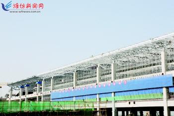 本报讯 (记者于哲)记者从济青高铁潍坊北站施工单位获悉,截至5月24日,济青高铁站房6标潍坊北站站房主体已经完工,目前正在进行屋面钢桁架、金属屋面、装饰装修的施工阶段。 据悉,潍坊北站站房主体建设采用型钢—钢筋混凝土框架结构,承轨层采用桥建合一结构形式。钢屋盖结构体系由大跨双向空间行架、钢檩条与树状斜支撑体系组成,工程结构跨度150米,总用钢量为9150吨。站房施工分为ABCD区,截至目前,A区屋面钢桁架完成三分之二;B区钢桁架吊装完成,正在进行金属屋面施工;C区屋面钢桁架吊装完成90%;D区钢桁架拼装完成80%,预进行钢桁架吊装。同时,站房雨棚屋面施工完成90%,装饰装修完成85%,机电安装完成70%。潍坊北站站房预计9月底具备竣工验收条件。