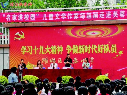 | ◤近日,潍城区芙蓉小学举办了“名家进校园”活动,儿童文学作家邹超颖走进学校,用讲故事的方式跟同学们交流。通过邹老师正确的引导与启发,同学们纷纷表示以后要养成多读书、读好书的好习惯。