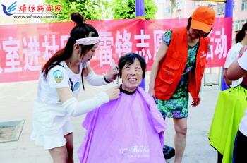 6月21日,奎文区北苑街道卧龙社区组织辖区志愿者开展义务按摩、理发等学雷锋志愿服务实践活动,践行“奉献、友爱、互助、进步”的志愿服务理念。此次活动充分展示广大志愿者践行雷锋精神的时代风采,营造学雷锋精神的良好氛围,不断扩大志愿服务的影响力,大力营造崇礼厚德的良好社会氛围。 图为志愿者正在为辖区居民免费理发。 记者王乐摄