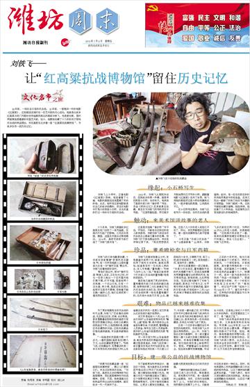 80年前,一场抗击日军的伏击战;30年前,一部轰动一时的电影《红高粱》,这些都深深地印在一位艺术家的内心深处。他就是以故乡红高粱与老门为题材创作油画而闻名的画家刘铁飞,也是被伦敦、里约两届奥组委邀请的中国艺术家。如今,他要将收藏了十几年的关于那场伏击战的物品捐出,并在高密东北乡建一座“红高粱抗战博物馆”,为故乡珍存一段历史记忆。 缘起:小石桥写生 刘铁飞上小学时,正值电影《红高粱》热映,他连着看了七遍,电影的画面深深地震撼了年幼的他。此后,他听说这部电影就是在自己的故乡拍摄的,而且在电影中打鬼子的那座小石桥,在当年真的打过一场针对日寇的伏击战。 2003年,刘铁飞从美院毕业后,回到故乡的第一件事,就是寻找那座小石桥。当年秋天,他来到了高密孙家口的“青纱桥”写生,作品《桥的记忆》后来被莫言收藏。莫言在为刘铁飞所写的序言中写道:“这座桥基陷落,桥石被岁月剥蚀得凹凸不平的小桥,跟随着电影《红高粱》走向了世界。铁飞用他的画笔把这座小桥给我搬来北京,一腔乡情如同美酒,让我感动不已。” 在小石桥写生期间,刘铁飞还有另外一份收获:当年伏击战的遗留物。起初,有一位住在附近的村民向他兜售家中的老鱼盘,后来又找出一截断了的刺刀和改为水瓢的日军钢盔。刘铁飞眼前一亮,这些可都有收藏价值啊。陆陆续续,他收集了几十件物品,包括弹壳及日军或游击队的枪械残件。 触动:来美术馆讲故事的老人 十几年来,刘铁飞根据故乡红高粱及老门创作了一系列油画,在海内外引起广泛影响,已先后在英国、德国、法国及中国台北等地展出。2014年,高密市政府为其打造了“刘铁飞美术馆”。 这座美术馆离“青纱桥”并不远,开馆后,不断有住在附近的老人前来参观,并跟刘铁飞讲述当年伏击战及公婆庙大屠杀的往事。但刘铁飞忙于参加奥运创作,并没有详细记录下来,“现在想想很后悔,这些八九十岁的老人有些已不在了,所以,我觉得整理好这些资料,建一座抗战博物馆已刻不容缓了。” 今年正值“孙家口伏击战”与“公婆庙惨案”80周年,刘铁飞多次前往这两个村庄,为两村80岁以上的老人拍照,并装框相赠。“这些照片我多洗了一套,将来抗战博物馆建好后要挂在主厅的墙上,取名《见证者》。”刘铁飞这样说。 珍品:董希瞻枪套与日军药箱 刘铁飞的父亲也酷爱收藏,十年前在老家筹建“胶莱民间石器馆”时,有一天听说相距5公里的董家大庄有一对“旗杆石座”要出手,刘铁飞拉着他前往该村。 等他们到达时,那对“旗杆石座”刚被人买走,正在失兴之际,村头一位老人抱出一个旧木箱问他们要不要。打开木箱,里面有两个皮枪套、一个旧公文包,还有一个旧水壶、袜子等。虽然这些东西比起那对石座年代要晚,但抱着不能白跑一趟的心态,他们还是把那一箱东西拉回去了。 刘铁飞在擦拭枪套尘土时,发现套盖内有两个字:轼堂。他马上找寻了相关文史资料,查阅后得知:轼堂是该村一位抗战人物的名,该人字希瞻。“董希瞻?!”刘铁飞当时心头一惊:“难道这就是那个打孙家口伏击战的董希瞻?他是我老家的。” 随后他又查阅了更多的资料:董希瞻是孙家口伏击战的副总指挥,他带领的第二大队被确定为这次伏击战的主攻队伍,同时,孙家口伏击战的第一枪也是董希瞻打的。这次战斗共消灭日军28名,缴获枪四十余支,子弹数万发,军刀3把(其中将级军刀1把),军用地图1份、军用汽车1辆等。 其中比较重要的一段记载是:“孙家口伏击战后,董希瞻将开走的汽车埋藏于地下。该战总指挥曹克明要董希瞻交出所得的汽车、枪支等战利品,被他拒绝,从此两相交恶。”这段记载也解开了刘铁飞的疑惑:原来这个印有大正、长平等字样的木箱为日军弹药箱,箱中的日军水壶、印有昭和十二年(1937年)的袜子等都应是那场伏击战战利品。 之后的十年时间,他与父亲先后收集到了三把军刀、两件大佐披风、一个将校背包、日军地图等,其中最为特殊的是一个日军药箱,该药箱做工十分精美,内有各类药品盒罐十几个,铁镊子一把。其中一款为战争中的外伤药“伤品一切效能药”,里面还剩有部分药粉,另一个标有日本陆军卫生材料厂的“眼软膏”,标记生产日期“昭和十三年(1938年)一月”。据文史专家介绍,这种档次的医药箱应为日本高级军官配备。 艰难:物品已越来越难收集 为了更好地展现当年伏击战的时代全景,刘铁飞广泛收集抗战物品,先后到过北京、济南、台北等地,甚至冒酷暑赶到刚拆毁的高密日军慰安所搜集过物证。目前已收藏抗战物品近千件。让他感慨的是,随着近年收藏热的兴起,这些抗战藏品价格也越来越高,并且越来越难收集。 “一张高密的民国照片要一千多元,一套民国版《高密县志》要几万元,以后收藏就更困难了。”刘铁飞说,这些藏品中,花费最多的是一本日本特务机关的极秘文件《山东省建设进步状况一览表》,该文件是从北京拍卖行高价拍得的。 该文件是昭和十八年(1941年)由日本的“山东省陆军特务机关”编写,上盖“极秘”章,其内容涉及山东省县知事任命、行政浸透、警察警备人员装备、保甲自卫团人员装备等,其中的“山东省行政浸透状况表”有较高研究价值。 另一份日军文件《山东省高密县、青岛市胶县农村调查成绩》的收藏过程很是曲折,刘铁飞在济南一家古董店发现此书时如