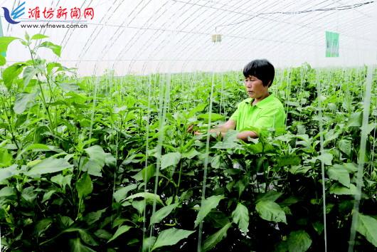 寿光市深入学习贯彻习近平总书记视察山东重要讲话精神,以争当“全省乡村振兴战略的排头兵”为目标定位实施乡村振兴战略,大力实施产业融合提质、美丽乡村提标、乡风文明培育、基层治理创新、强村富民提升行动,不断强化项目、改革、投入支撑,不断赋予新时代下“寿光模式”新内涵,全力打造乡村振兴的寿光样板。图为近日寿光市现代农业高新技术集成示范区职工在管理大棚蔬菜。 记者王晓光摄