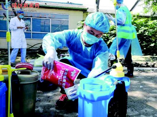 当前,在洪涝灾区,灾后卫生防疫工作正在有序推进。市疾病预防控制中心防疫队在灾区一线全面开展医疗卫生救援和灾后卫生防疫工作,严格做到“全覆盖、无死角”,有效预防灾后疫情的发生。图为近日,市疾控中心防疫人员在寿光市稻田镇深入每处村镇、每条街巷开展防疫工作。 记者孙孔嘉摄