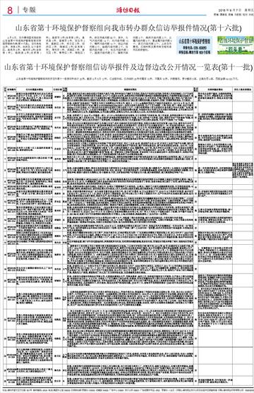 山东省第十环境保护督察组向我市转办群众信访举报件情况(第十六批)