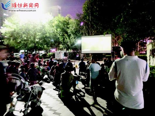 为丰富居民娱乐文化生活,加强爱国主义教育,9月6日晚,奎文区大虞街道福寿街社区在玫瑰园小区北门广场开展了“红色电影进社区”文化惠民活动,受到辖区居民欢迎。该社区通过组织形式多样的宣传活动,让广大党员干部群众经常性接受“红色教育”,知党恩、跟党走,自觉投身城乡经济建设。 记者王乐摄