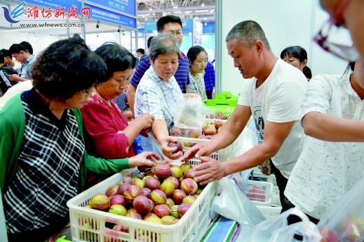 | 展会上的特色七彩梨受到参观者欢迎。 记者刘伟摄 |