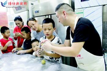 为喜迎中秋节的到来,让辖区青少年了解这一传统节日,继承传统文化精神,9月19日,奎文区工福街社区社工姐姐们带领孩子们走进社区内的一家蛋糕店,让孩子们详细了解月饼的制作过程,烘焙师傅教小朋友们自己动手,打造自己的创意月饼,让孩子们体验了一次特殊的月饼DIY之旅! 记者孙树宝摄