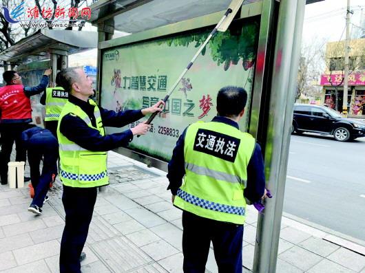 全市创城工作开展以来,潍城区狠抓落实,积极组织辖区志愿者清洁公交车站牌、打扫卫生死角等,为创卫迎审工作添力。截至目前,该区共擦拭、清洗护栏9.1公里,修剪、涂白道路两侧树木2600多棵,为广大市民营造舒适生活环境。图为4月2日,志愿者正在清洁公交站牌。 记者王乐摄