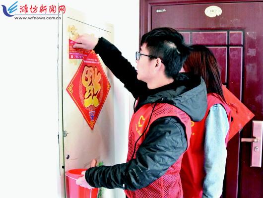 为迎接国家卫生城市复审,寒亭区万春园社区联合辖区单位开展“志愿我先行”服务活动,志愿者们走进住宅小区清理小区及楼道内卫生,以实际行动营造整洁优美的人居环境。图为志愿者在清理楼道卫生。 记者王晓光摄