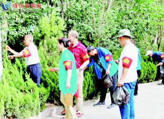 图①:近期,奎文区梨园街道栾家社区组织党员开展“我为党旗添光彩”党员主题实践活动。党员们纷纷走进社区,走上街头,清理垃圾死角,清除乱贴广告,为我市创卫迎审工作贡献力量。 记者姜斌摄 图②:为进一步改善贫困户生活面貌,让贫困病残户养成良好的生活习惯,6月16日,潍城区西关街道高家东社区组织辖区志愿者走进贫困病残户家中,帮助贫困家庭打扫卫生。 记者王乐摄 图③:6月12日,奎文区志愿者在大虞社区清理小区卫生。 记者姜斌摄