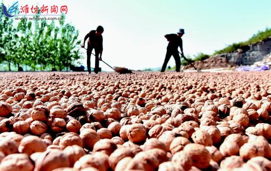 当日是二十四节气中的白露,河北省邯郸市涉县多地农民在忙着晾晒丰收的核桃。