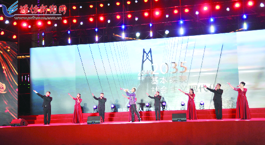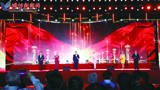□本报记者 刘福文/文 姜斌/图 夜晚的人民广场,华灯初上,秋风送爽,9月25日晚,来自市直机关各部门、各单位的干部职工与周围市民汇集在此,台下坐无缺席,台上灯光璀璨,现场观众纷纷挥舞国旗,拍照留念,远处看去,宛如星光点缀夜空。由市委市直机关工委主办的潍坊市直机关庆祝中华人民共和国成立70周年文艺汇演在这里举行。 “壮丽70年,奋斗新时代,在习近平新时代中国特色社会主义思想指引下,潍坊拼搏进取,攻坚克难,经济社会健康发展,新旧动能转换顺势而起,乡村振兴战略扎实推进,城市快速发展,广大人民群众安居乐业,共享改革开放的伟大成就和建设成果。”现场大屏幕上,一部短片简要介绍新中国成立70年来我市取得的辉煌成就,音乐与画面的结合感染了每一位观众,为接下来精彩纷呈的节目预热。 70年沧桑巨变,看今朝日新月异 蓦然,台上音乐响起,立即渲染了整个舞台气氛。舞蹈演员以婀娜的舞姿亮相舞台,那欢畅淋漓的舞姿,优美娴熟的动作,千般娇姿,万般变化,台上似乎绽放了一朵朵火红的鲜花,赢得了观众阵阵掌声。家逢盛世红火火,国逢盛世蓬勃勃,人逢盛世喜多多,一舞盛世欢乐歌,开场歌舞《盛世欢歌》极大地调动了观众的情绪,文艺汇演正式拉开序幕。 市直机关各级党组织和广大党员干部职工始终凝心聚力、艰苦奋斗,充分发挥党组织的战斗堡垒和党员的先锋模范作用,不忘初心、牢记使命,锐意改革、创新实干,谱写了一首首动人的潍坊旋律,谱写出无愧于历史的时代华章。 “亲那长城的脊梁,亲那黄河的血液,亲吻我那华夏的丰功伟绩……”歌声嘹亮动人,唱得人如痴如醉,唱得人激情澎湃。歌伴舞《亲吻祖国》歌唱美丽中国,歌声仿佛把观众带到了祖国各地,领略神州大地壮美的风光,和祖国同呼吸共命运,祖国就是我们最强大的依靠和支持,把对祖国的深深热爱融入血脉,浇灌心灵。舞蹈《心声》传递出对祖国朴素而真挚的热爱。 70年风雨兼程,守初心砥砺前行 伟大的祖国励精图治,换来了人民的幸福安康。“祖国,您给了我那么多,我该怎样报偿?我没有婉转的歌喉为您歌唱,没有丹青妙手为您画像,没有长成参天大树做您的栋梁。可是,我有一腔滚烫的热血,时时刻刻,我在心中,为祖国而歌唱!”原创诗歌朗诵《为祖国而歌》声音如洪,字字铿锵,极富表现力和感染力,观众深情聆听,不时发出阵阵喝彩声。 中国共产党领导中国人民艰苦奋斗,一步一个脚印走,一棒接着一棒干,一个富强、民主、文明、和谐、美丽的新中国傲然屹立于世界东方。悠扬的小号表演伴随着新中国成立以来国家发展重大事件的集中展示,市统计局表演的小号领奏加小合唱《我的祖国》带领观众追忆往事,拥抱今朝。 拳拳爱国心,浓浓中华情,道不尽祝福千遍,愿祖国辉煌灿烂。歌曲串烧《中华情》在礼赞新中国70华诞之际,用歌声表达对祖国的深深祝愿,为中国人民谋幸福,为中华民族谋复兴。这就是共产党人的初心和动力,是每一个共产党人的责任担当,是中国共产党对人民的庄严承诺。诗朗诵《初心颂》带领观众回看历史,重温誓言。歌舞《不忘初心》旋律悠扬直击人心,让观众的爱国之情油然而生…… 70年披荆斩棘,愿祖国永葆青春 悠悠华夏五千年,灿烂文明耀世间。树立文化自信,弘扬民族艺术,建设文明强国,是每一个新时代中国人义不容辞的义务和责任。歌舞表演《中华医诀》以艺术表演的形式展现了源远流长的中医药文化。潍坊风筝是传统手工艺品,被列入第一批国家级非物质文化遗产名录,潍坊国际风筝会荣膺“改革开放40年中国十佳品牌节会”。舞蹈《风筝》于舞台上展示了潍坊风筝的艺术魅力。弘扬国粹文化,再现京剧芳华,国粹京剧联唱以圆润动听的唱腔紧紧扣住了观众们的心弦。 节目进入到尾声,大型情景歌舞剧《丝路风情》展现了新时代新思想引领下的新城镇的优美姿态和锦绣模样。歌舞大合唱《天路》与《我和我的祖国》把现场的气氛带到最高潮,观众被台上精彩的演出所震撼,内心的爱国情感也被充分调动,情不自禁地跟随旋律唱起歌曲。一时间人民广场歌声回荡、红旗招展,共同祝愿伟大的新中国繁荣昌盛、光辉灿烂。演出在全场合唱《歌唱祖国》中圆满结束。 本次文艺汇演是市直机关参与全市庆祝中华人民共和国成立70周年系列活动的重要组成部分,也是市委宣传部举办的第四届潍坊市民文化节的重点文化活动之一。自活动筹备以来,市直各部门、各单位合理安排、精心组织,遴选优秀作品参加演出,广大党员干部职工在繁忙的工作之余精心组织、加紧排练,把“不忘初心、牢记使命”主题教育的成效落到实处,充分展现了昂扬向上的精神风貌与敢于担当作为的进取精神,抒发对党、对祖国由衷的祝愿,以优异成绩向新中国70华诞献礼。