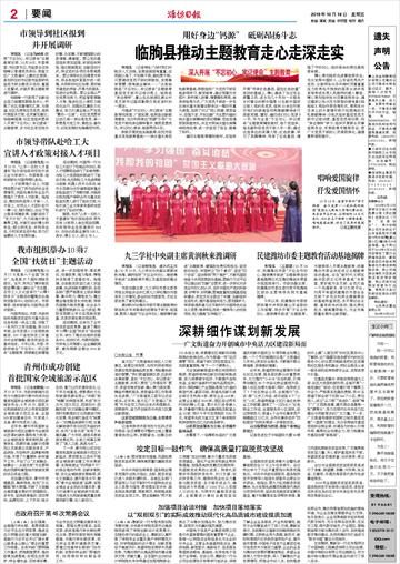 (上接6版) 组别 单位 整改内容 整改目标及具体措施 完成时限 责任人 第十四巡回指导组 市水利局 河湖管理范围内□四乱□问题突出 整改目标:清除河湖管理范围内的违法建筑物、构筑物、高杆作物、林木和建筑、生活垃圾等,全面构建□无违河湖□。具体措施:1.严格落实《山东省河湖违法问题认定及清理整治标准》及其相关工作要求;2.督导各县市区河长办自查自纠,并形成问题清单,于9月25日前盖章报市河长办河备案;3.督导各县市区边排查边整改,制定整改计划并同步开展整改;4.督导各县市区自验销号,对所有问题逐个验收,形成验收报告;5.根据各县市区专项行动进展和完成情况,市河长办同步开展抽查核查。 11月底前取得明显成效,长期坚持 周寿宗李盛之 38个省定贫困村存在供水管道损坏、个别户未接入供水管网等影响饮水安全问题 整改目标:全面解决38个省定贫困村的饮水安全问题,确保贫困村、贫困人口饮水持续安全。具体措施:1.市水利局成立6个督导组,不定期进行督导检查,强化整改落实;利用政府购买服务方式,委托第三方随机抽取村庄,进行农村饮水安全复核;2.实行□周调度,月通报、年度考评□工作机制。对制约工程进度和质量的关键问题,挂牌督办、专人盯办、重点查办,进度严重滞后的县市区和项目,对有关县市区相关负责人进行约谈;3.实施农村饮水安全□回头看□专项行动。在前期调查摸底、全面排查的基础上,组织实施农村饮水安全□回头看□专项行动,进一步发现问题,力促整改到位。 11月底前达到整改目标,长期坚持 周寿宗王 辉 市农业农村局 对非洲猪瘟等疫病防控能力弱 整改目标:加强各级防控非洲猪瘟等重大疫病的能力建设,提升基层疫病防控人员对非洲猪瘟等重大疫病防控水平。具体措施:1.调整充实防控重大动物疫病指挥部力量;2.深入开展疫情排查和流行病学调查;3.加强非洲猪瘟实验室监管;4.举办全市重大动物疫病防控技术能力提升培训班;5.邀请国家非洲猪瘟防控方面的权威专家讲课;6.组织疾病防控人员加大宣传工作,增强养猪龙头企业防控非洲猪瘟意识。 11月底前取得阶段性成效,长期坚持 常祖领张丛臣 市海渔局 海洋灾害防灾减灾的体制机制不够完善 整改目标:完善部门间海洋灾害应急响应工作协调体制机制,提升海洋灾害预警报和应对处置能力。具体措施:1.与市应急管理局就海洋灾害预警报、防灾减灾、应急响应等进一步沟通对接,探索建立合理顺畅的海洋灾害防灾减灾协作体制机制;2.配合省有关部门推进完善《风暴潮灾害重点防御区划定技术导则》的制定出台;3.建立快捷完善的海洋灾害预警报信息发布及接收平台,将市应急管理局等相关部门工作人员纳入海洋灾害预警报信息系统,第一时间联动处置。 10月底前取得明显成效,长期坚持 李承源叶 林 市商务局 汽车销售企业存在乱收费、捆绑销售、虚假宣传等问题 整改目标:整顿汽车销售行业秩序,完善监督管理机制,推动汽车销售企业依法经营,提升服务质量和水平,维护汽车消费者合法权益。具体措施:1.设立投诉举报电话,畅通问题反映渠道,成立市县两级工作专班,在全市开展专项整治工作;2.建立日常检查、随机抽查、交叉互查相结合的检查机制,县级商务主管部门加强对辖区内汽车流通企业的日常检查和随机抽查,市商务局每年组织1-2次交叉检查;3.提升汽车流通企业服务质量,开展诚信经营承诺,推进汽车销售企业诚信体系建设,依法依规制定汽车流通行业领域不良信用记录公示和退出制度;4.加大媒体宣传力度,加强信用政策法规、信用知识和典型案例宣传,提高汽车销售企业诚信意识和汽车消费者的维权意识。 10月底前取得阶段性成果,长期坚持 王 富李书林 市市场监管局 中小学学校食堂及校园周边食品存在安全隐患 整改目标:全市中小学食堂持证率100%;校园周边(200米内,下同)食品经营业户持证率100%;监管执法人员依法监督检查覆盖率100%。具体措施:在中小学食堂食品安全方面:1.实施□阳光厨房□工程,把好食品加工制作关;2.实施□快检广覆盖□工程,把好食品检验检测关;3.实施□集中采购□工程,把好食品进货采购关;4.落实□四查□制度,提升学校食品安全管理水平,切实保障广大师生饮食安全。在校园周边食品安全方面:1.组织监督检查,对无证经营等违法违规行为进行严肃查处;2.加强对校园周边的食品经营人员的食品安全知识培训;3.引导规范使用食品经营□一本通□;4.印发□五毛食品□风险警示宣传画、校园周边食品经营承诺书;5.建立安全监管台账,发现问题立查立改。 11月底前达到整改目标。监督管理长期坚持 冯纪伟 市住房公积金管理中心 公积金账户退休提取、公积金贷款委托自动提取还贷两项业务未实现网上办理 整改目标:利用数据共享,实现公积金账户退休提取、公积金贷款委托自动提取还贷两项业务通过公积金官方网站自助办理,达到□零跑腿□目标。具体措施:1.就数据共享中存在的问题,提请大数据局组织与数据共享单位召开三方会议,进行沟通与确认;2.由软件开发公司负责接口开发,打通数据共享通道,将外部数据导入业务系统;3.对接入系统的政务信息数据,由业务科室负责确定业务流程应用环节;4.由业务科室负责选取上线的业务事项,进行流程再造,主持提出上线实施方案;5.公积金系统软件开发公司,尽快实现业务上线