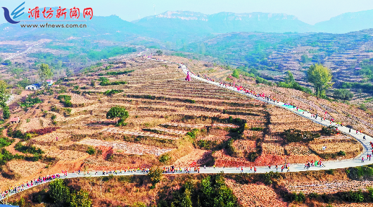 10月20日,2019临朐九山乡村游爱情马拉松赛鸣枪开跑,来自全国各地的800多名马拉松运动爱好者参加比赛。本次马拉松设山地爱情马拉松和迷你马拉松赛,山地爱情马拉松线路全长17.8公里,跨越拥有3000亩花海的齐鲁美丽田园,参赛者们在运动中既领略了田园风光,又体验到了乡愁乡韵。 记者孙树宝摄