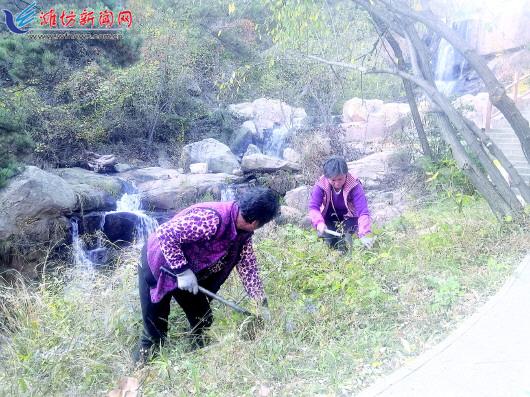 近期,临朐县提高思想认识,完善责任监管体系,增强工作责任感紧迫感,突出重点,狠抓关键,积极保护生态环境。图为10月27日,工作人员正在沂山清理杂草。 记者姜斌摄