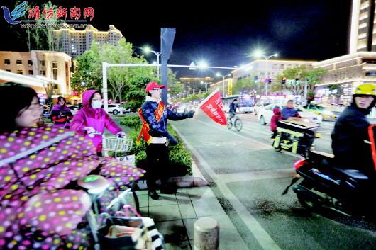 11月13日,在高新区福寿东街与东方路路口,手拿“小红旗”的志愿者在路口督导交通。连日来,在高新区的各个路口都能看见手拿“小红旗”的志愿者,他们于早晚交通高峰时段,到包靠路口及斑马线,按照全国文明城市复审标准要求,集中开展礼让斑马线、维护公共秩序、文明交通劝导等志愿服务活动。 记者王乐摄