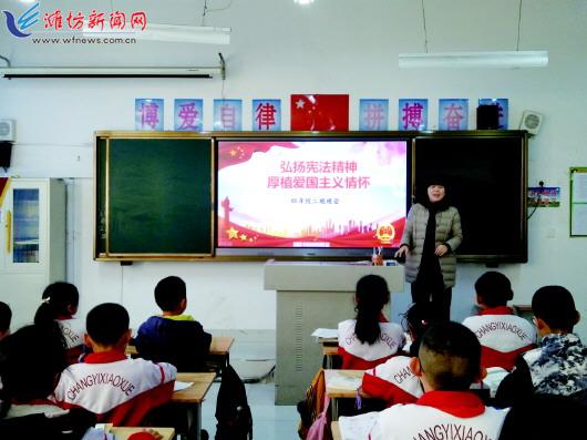 12月4日,昌邑市都昌小学开展了丰富多彩的宪法宣传教育系列活动,进一步增强学生的法治观念,推动学生树立法律意识,图为学校组织各班级召开“弘扬宪法精神,厚植爱国主义情怀”主题班会。
