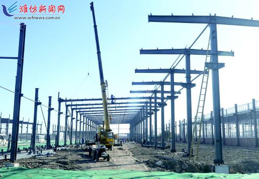 近年来,青州市加快实施新旧动能转换重大工程,全力打造青州制造、青州花卉、文化青州、青州旅游、康养青州和青州物流“六大品牌”,同时加强“隐形冠军”、瞪羚企业培肓,抓好制造业公共服务平台、共享工厂等共享体系建设,推动经济稳中有进、进中提质。图为1月4日,施工人员在该市度辰智能制造产业园项目现场紧张施工。 记者王晓光摄