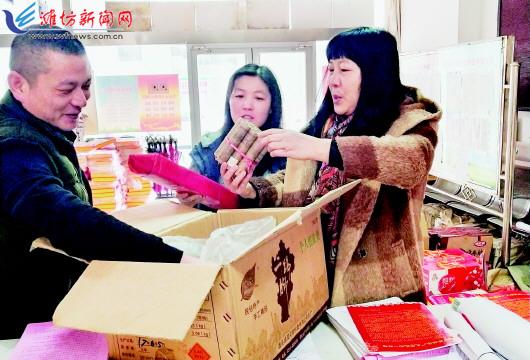 1月16日,市民在高新区新城街道富华社区服务中心用鞭炮兑换鸡蛋。