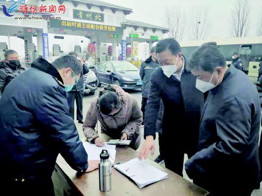 | 图为市审计局负责人在青州市北站防疫检测站查看防控措施落实情况。