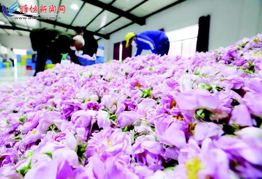5月10日,在江苏省海安市城东镇石庄村玫瑰种植园内,农民在整理待售的玫瑰花。 近日,江苏省海安市城东镇石庄村玫瑰种植园内的玫瑰花竞相绽放,农民忙着采摘、装运鲜花,发送到各地的工厂进行精油提炼等深加工。同时,玫瑰园的美丽景致吸引了周边地区的人们前来观光旅游、体验采摘。玫瑰花成为当地农民脱贫致富、乡村振兴的“致富花”。 (新华社发)