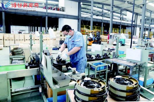 近年来,经济区坚定不移推进工业转型升级,加大工业经济供给侧改革,全力推进新型工业化,新兴产业加快崛起,传统产业加快转型,重大项目加快推进,工业经济不断提质扩量,彰显出强劲的发展势头。图为5月16日,在潍坊埃瑞制动系统有限公司生产车间内工人正在组装设备。 记者王乐摄