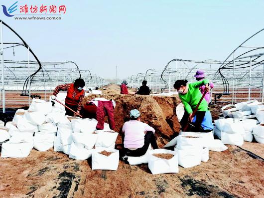 近年来,峡山区以实施乡村振兴战略为总抓手,立足自身农业优势,引导农业由传统型向现代型模式转变。该区进一步延伸有机姜产业链,完善流通渠道,推动有机姜产业向精深加工领域发展。图为近日,峡山有机姜融合创新产业园农户正在装填肥料。 记者姜斌摄